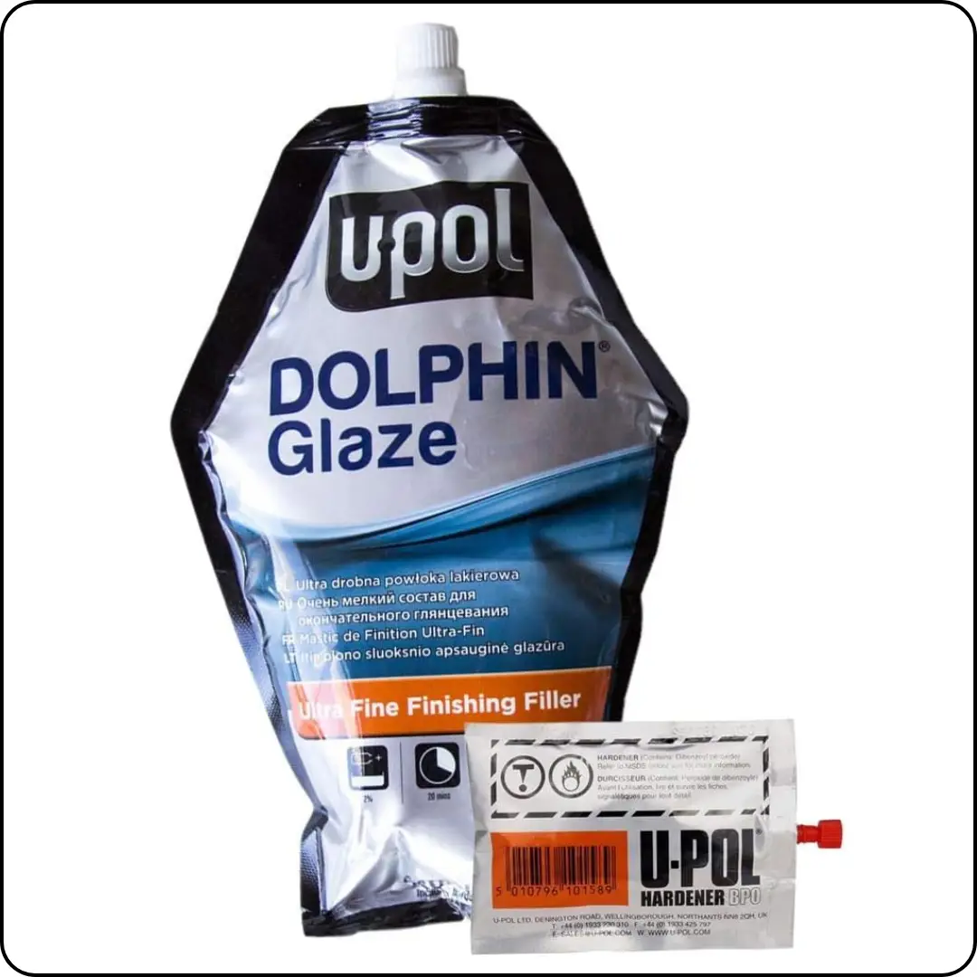 U-POL Dolphin Glaze Brushable Stopper Putty Hardener Self Levelling New Dent Hole Rust Body Filler UPOL BAGDOL 440ml Ideal for Stone Chips/Pin Holes/Very Small Scratch Easy Sand
